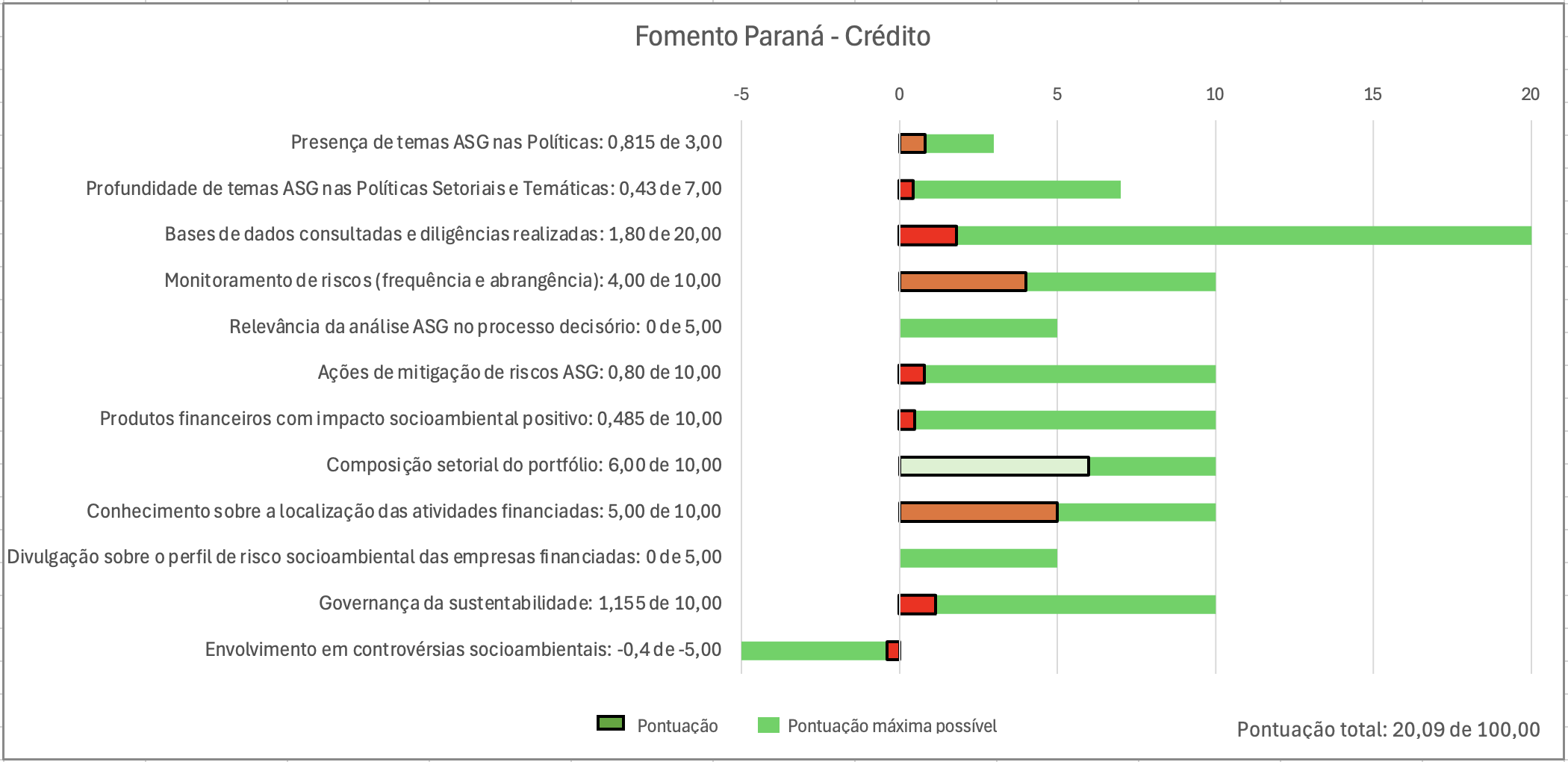 Como pontos negativos, destacam-se todos os itens relativos a Gerenciamento de Riscos Socioambientais, o que revela riscos de a agência estar financiando atividades econômicas com impactos negativos.